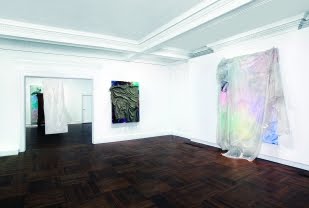 Mr. Hammons is no painter and doesn’t care to be; he’s making fun of painting altogether, because when you lift the tarp, you find the same kind of splashy colorful inane gestural painting that you can find hanging in many Chelsea galleries right now. He is indifferent to them; he covers them and gives them shelter, but what convinced me was the beautiful effect the ripped and dirty draped plastic creates as it cascades over the canvas and rolls down the wall, spilling onto the floor.
