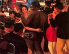During Motley’s sojourn abroad, he visited the Louvre often, contemplated Parisian passersby and observed the city’s various night clubs and cafes. Significant paintings from the period were Café, Paris, Dans la Rue, and the captivating Blues. Blues is a nightclub scene, combining jazz musicians and patrons dancing in a tightly-composed arrangement. In Blues, Motley made a point to not include any African-Americans, even though the painting is often considered to be an example of African-Americans in art. Motley had found a club called The Petite Café that was frequented by Africans, West Indians and French, and he celebrated their range of skin tones, making sketches and watching the action quietly from the sidelines.