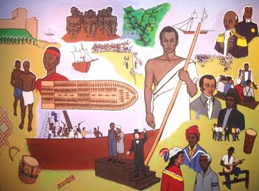 Wilfred Stroud’s best-known work is the mural From Africa to America. Measuring 68 inches tall by 55 feet long, the work is installed on the first floor of the Tubman Museum. A signature piece in the Museum’s collection, the work was commissioned in 1988 with funds provided by the Macon Arts Alliance and the City of Macon. At the time of its creation, Stroud stated that, “The purpose of this mural is to present a visual history of the black man and woman from the earliest times in Africa to the present times in America. The panels focus attention upon the impact of outstanding persons, and events that made a change in the lives and conditions of black people in particular, and the world in general.”