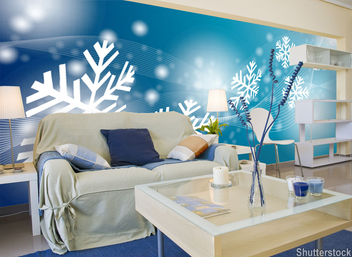 Take it a step further and transform an entire room of your home with a wall mural. From holiday-centric Santa scenes to beautiful snowy landscapes, Murals Your Way offers numerous holiday wall murals that can transform your living room into a lovely winter escape. Their SmartStick repositionable wall fabric allows easy install and removal. Just store your mural with the holiday decorations and reapply it year after year.