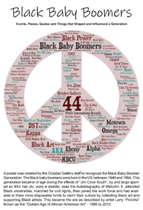 Black Baby Boomers. Celebrating Events, Places, Quotes and Things that shaped and influenced a Generation. A get together to discuss the past, look to the future, listen to Motown music and have a great time. FREE Black Baby Boomer Poster (see below) to all who attend.