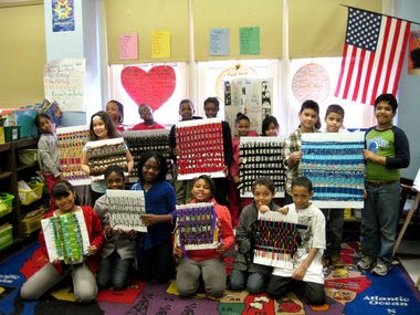 Inspired, the students produced striking fabric-strip weavings from scraps of material that Ms. Ellison provided. “I gave them lots of strips, and they had to plan and work in groups. This was not easy,” she said.