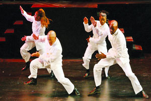 Opening with “Go West: circa 1830” a rousing traditionally inspired dance to the beat of the West African Djembe drum, the dancers dressed appropriately in period costumes, and as noted by Frederick Douglass in his autobiography, danced and sang in a manner which “would make the dense old woods, for miles around, reverberate with their wild songs, revealing at once the highest joy and the deepest sadness.” Because the slave owners and overseers eventually realized that religious rituals were being practiced as well, the drum was banned and Africans had to discover new ways to continue an ancient tradition.