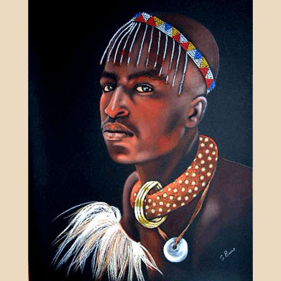 It is the colours of Africa, the people, their beadwork and scarification that are her inspiration. Her pictures are larger than most and she has had many exhibitions in Zimbabwe, Kenya, South Africa and the UK. While her main focus is on the peoples of Africa, Stephanie is a versatile artist and moves from oils to pastels with ease. She takes commissions from both the private and corporate sectors. As well as her painting and drawing, Stephanie is well known for her interiors in corporations, small businesses, hotels and private homes.